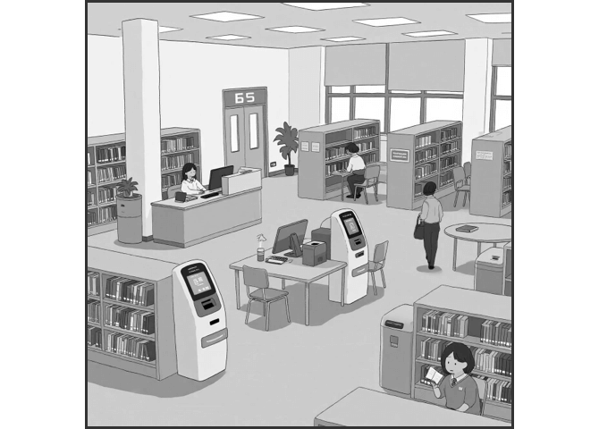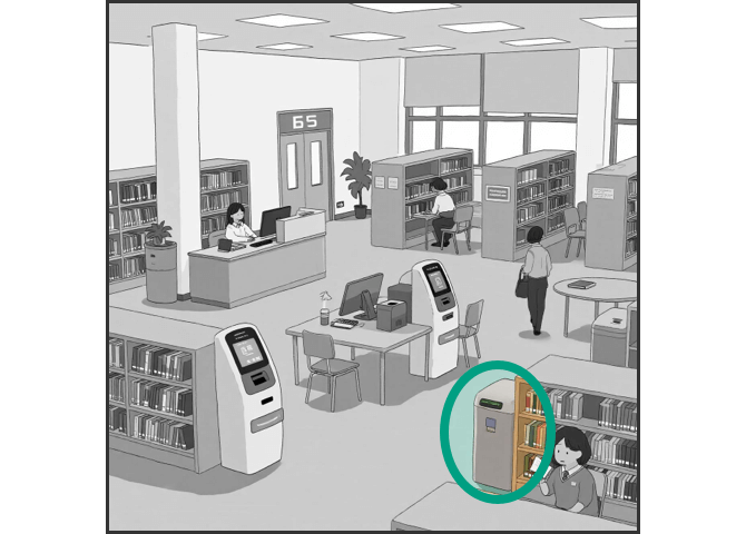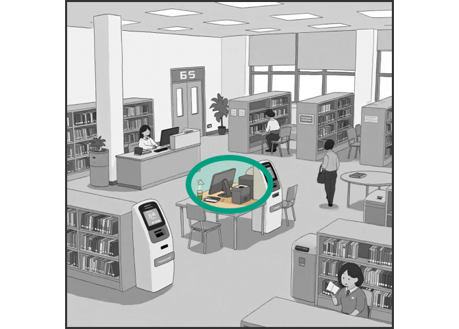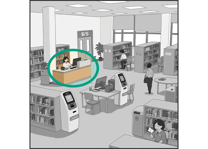 You are guiding students through the process of checking out books at the university library. Listen to the speaker and repeat what she says. Repeat only once.